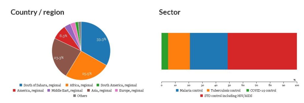 The organization, Global Fund to Fight AIDS, Tuberculosis and Malaria, is involved in Africa, Asia, Europe and Regional America. Here is their budget financial structure: